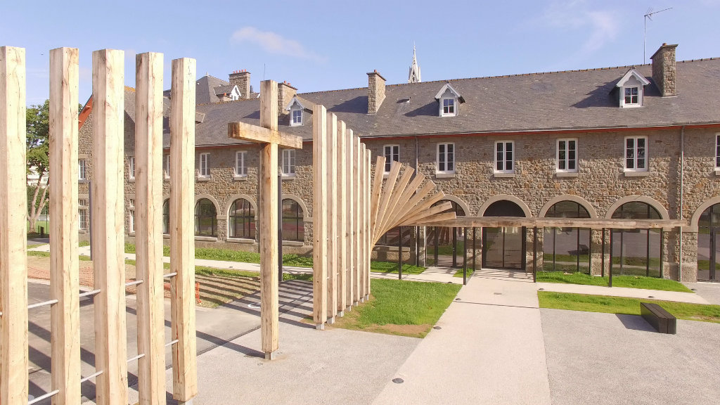 « La rénovation complète de la Maison Saint-Yves ne pouvait nous faire oublier ses origines architecturales audacieuses ni son ancrage fort dans la ville de Saint-Brieuc et le département des Côtes d’Armor. Le séminaire Saint-Yves a été un haut lieu de l’histoire du diocèse de Saint-Brieuc et Tréguier. Pendant plus de 40 ans, des centaines de jeunes hommes y ont vécu et étudié afin de devenir prêtres au service de l’Église. Passer du Séminaire Saint-Yves à la Maison Saint-Yves, c’était un beau défi à relever, en conjuguant héritage et modernité, fidélité et audace missionnaire. » – Mgr Denis Moutel, évêque de Saint-Brieuc et Tréguier. Extrait de la préface de l’ouvrage « La Maison Saint-Yves – Histoire du Grand Séminaire de Saint-Brieuc » (Editions Ouest-France, 2017)