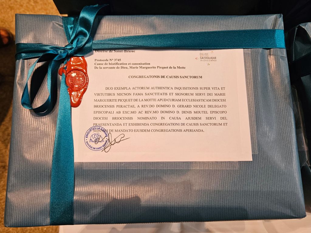 Selon les dispositions de l'instruction "Sanctorum Mater, article 138 §1, pour la nomination du porteur, l'évêque de Saint-Brieuc et Tréguier, Mgr Denis Moutel, se désigne lui-même pour porter les actes des deux enquêtes diocésaines sur les vertus héroïques du Serviteur de Dieu Claude Toussaint Marot de la Garaye, et de la Servante de Dieu Marie Marguerite Picquet de la Motte, au Dicastère pour les Causes des saints.