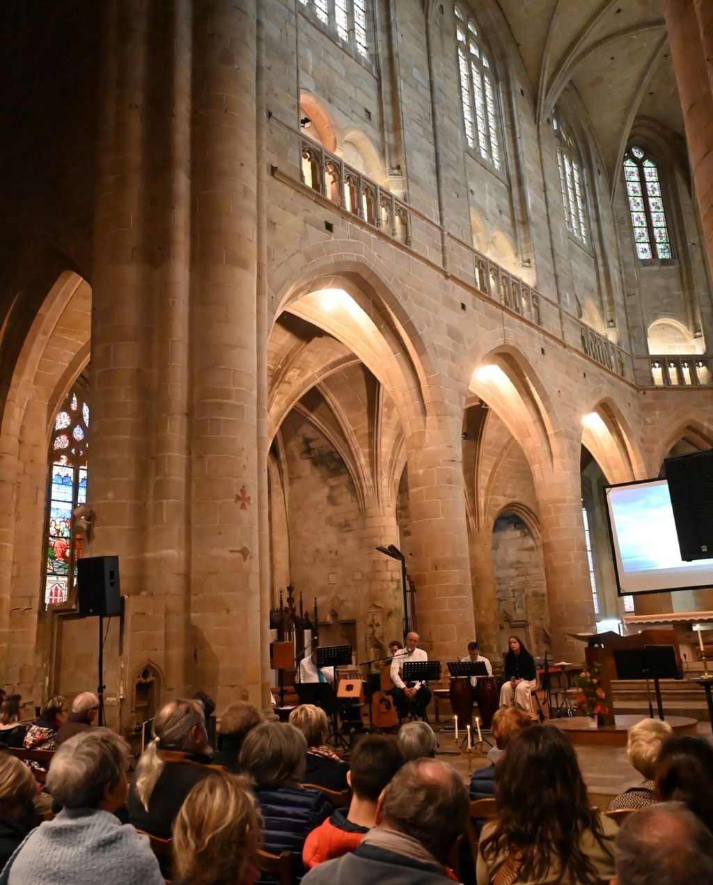Incontestablement ce chant fut un des moments forts de la soirée. Un autre moment fort fut la reprise de Matthieu 25.40, en déclinant la façon dont Claude et Marguerite de la Garaye l’ont mis en œuvre concrètement dans leur vie. Accompagné par le refrain Ubi Caritas repris en chœur par le public.